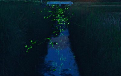 圧倒的な数のほたるによってもたらされる幻想的な風景です。
